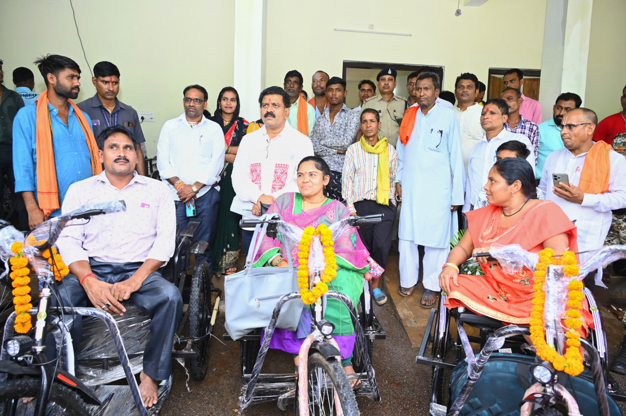 रायपुर, उपमुख्यमंत्री कार्यालय परिसर, कवर्धा में विशेष कार्यक्रम के दौरान छत्तीसगढ़ के उपमुख्यमंत्री विजय शर्मा ने 14 दिव्यांगजनों को बैटरी चलित मोटराइज्ड ट्रायसायकल, दो दिव्यांगजनों को ट्रायसायकल, और एक दिव्यांगजन को व्हील चेयर का वितरण किया।