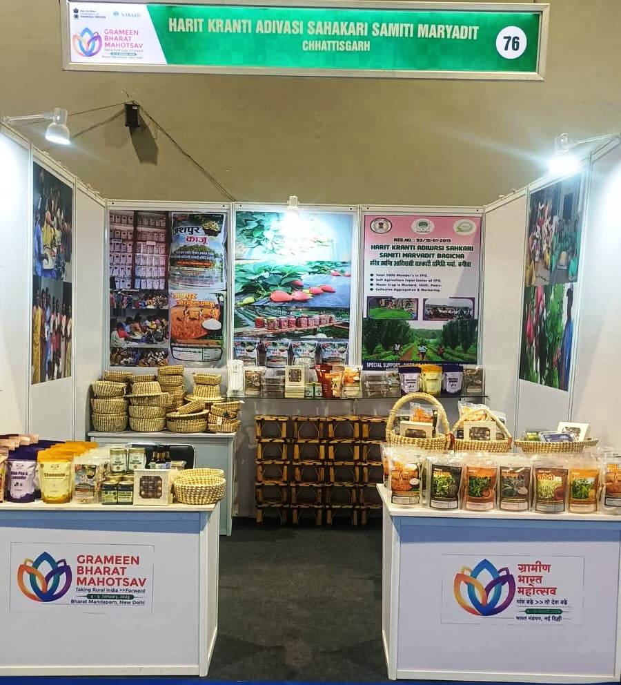 ग्रामीण भारत महोत्सव में हरित क्रांति आदिवासी सहकारी समिति मर्यादित छत्तीसगढ़ द्वारा लगाए गए स्टाल में जशपुर जिले में उत्पादित काजू, जीराफूल चावल, रागी और महुआ का बना लड्डू, कुल्थी दाल, मड़वा आटा, रागी से कुकीज, जैकफ्रूट कुकीज, महुआ एनर्जी कैंडी, महुआ नेक्टर, जशपुर की चाय सहित अन्य कई खाद्य उत्पाद प्रदर्शन एवं विक्रय के लिए उपलब्ध हैं, जिसे जशपुर जिले के वनोपज का स्थानीय स्तर पर प्रसंस्करण कर तैयार किया गया है, जो स्वादिष्ट और सेहत के लिए उत्तम है। जशप्योर के प्रोडक्ट का निर्माण आदिवासी युवाओं और महिलाओं द्वारा पूरी शुद्धता के साथ किया जाता है। यही कारण है कि अंतर्राष्ट्रीय बाजार में जशप्योर ब्रांड ने अपनी एक अलग पहचान बनाई है।
