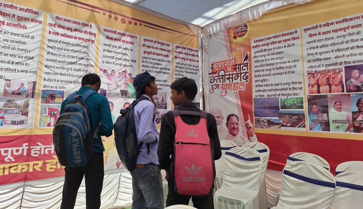 प्रदर्शनी स्थल मे एलईडी स्क्रिन के माध्यम से भी उपलब्धियों की जानकारी दी जा रही है। इसके अलावा पुस्तक, ब्रोसर, बुकलेट का भी वितरण किया जा रहा है। प्रदर्शनी में प्रधानमंत्री जनजाति आदिवासी न्याय महाअभियान योजना से लाभान्वित हुए जनजाति परिवारों भी दर्शाया गया है। प्रधानमंत्री आवास योजना किस तरह से लोगों के पक्के आशियाने को पूरा कर रही है इसे भी प्रदर्शित किया गया है। इसके साथ ही सीएम विष्णुदेव साय का प्रयास से 220 बिस्तर का अस्पताल, 400 केवी विद्युत सब स्टेशन, पर्यटन के क्षेत्र में जशपुर ले रहा नया रूप, एडवेंचर, इको-टूरिज्म टूरिज्म को बढ़ावा देने के उद्देश्य से हुई है मायली नेचर कैंप का किया जा रहा है विकास को भी प्रदर्शित किया गया है।
