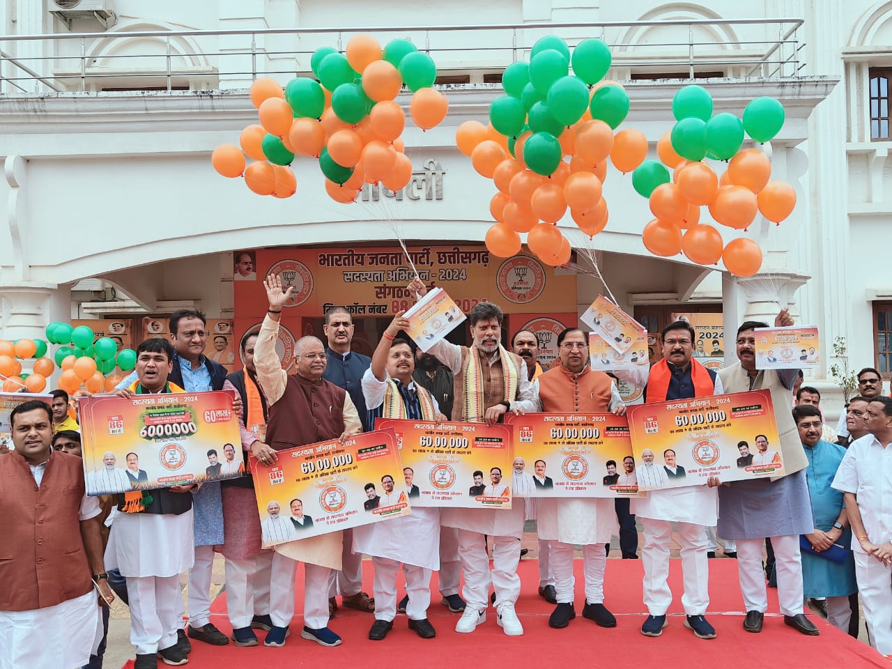 रायपुर : भारतीय जनता पार्टी की छत्तीसगढ़ इकाई ने राज्य भर में 60 लाख से अधिक लोगों को प्राथमिक सदस्य के रूप में शामिल करते हुए सदस्यता अभियान का अपना लक्ष्य हासिल कर लिया है।