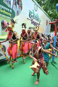 राउत नाचा के कलाकारों के आग्रह पर मुख्यमंत्री विष्णुदेव साय ने छत्तीसगढ़ी पारंपरिक वेशभूषा धारण कर कलाकारों का उत्साह बढ़ाया, जिससे हरेली के इस महोत्सव में एक नई ऊर्जा का संचार हुआ।