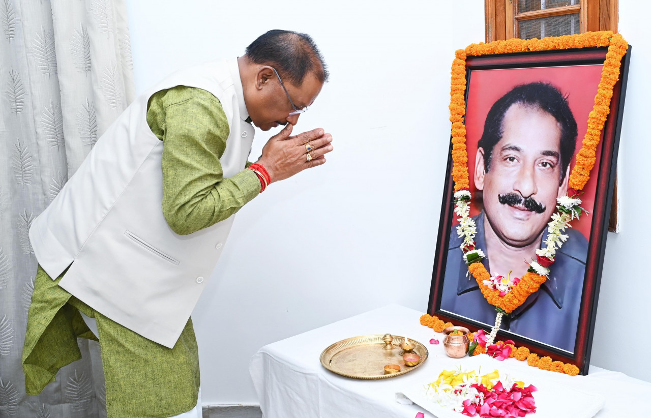 Chhattisgarh : Raipur , मुख्यमंत्री विष्णु देव साय ने आज मुख्यमंत्री निवास में पूर्व केन्द्रीय राज्यमंत्री स्वर्गीय श्री दिलीप सिंह जूदेव की पुण्यतिथि पर उनके छायाचित्र पर पुष्प अर्पित कर नमन किया।इस अवसर पर उपमुख्यमंत्री द्वय अरूण साव और विजय शर्मा, विधायक किरण देव, शिवप्रकाश, आजय जामवाल और पवन से भी मौजूद रहे।