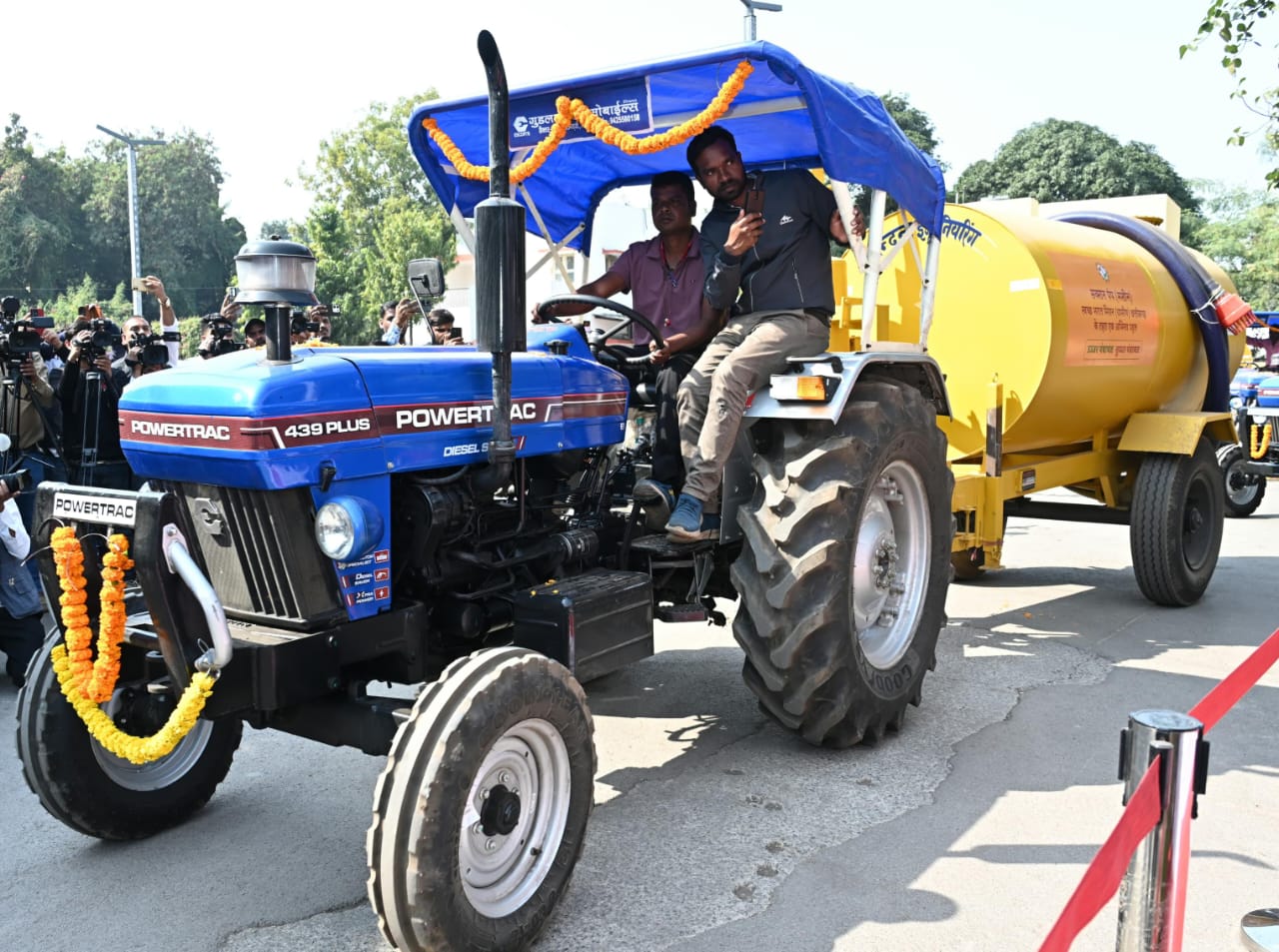 मुख्यमंत्री श्री विष्णुदेव साय ने ग्राम पंचायत बिरकोनी जिला महासमुन्द, ग्राम पंचायत टेमरी जिला रायपुर, ग्राम पंचायत सारंगपुर कला जिला कबीरधाम, ग्राम पंचायत गम्हरिया जिला जशपुर, ग्राम पंचायत कोतरी जिला सारंगढ़-बिलाईगढ़, ग्राम पंचायत लगरा जिला जांजगीर-चांपा, ग्राम पंचायत परसदा वेद जिला बिलासपुर, ग्राम पंचायत रूदा जिला बालोद, ग्राम पंचायत झझपुरी कला जिला मुंगेली, ग्राम पंचायत पथरिया जिला दुर्ग को डी स्लज वाहन हस्तांतरित किया। इस अवसर पर विधायक गुरु खुशवंत साहेब, प्रमुख सचिव पंचायत एवं ग्रामीण विकास विभाग श्रीमती निहारिका बारिक सिंह, मुख्यमंत्री के सचिव श्री पी. दयानंद, मिशन संचालक स्वच्छ भारत मिशन (ग्रामीण) श्रीमती जयश्री जैन, आईसीआईसीआई बैंक के स्टेट हेड श्री विवेकानंद दुबे, स्वच्छ भारत मिशन (ग्रामीण) के अधिकारी कर्मचारी उपस्थित थे।