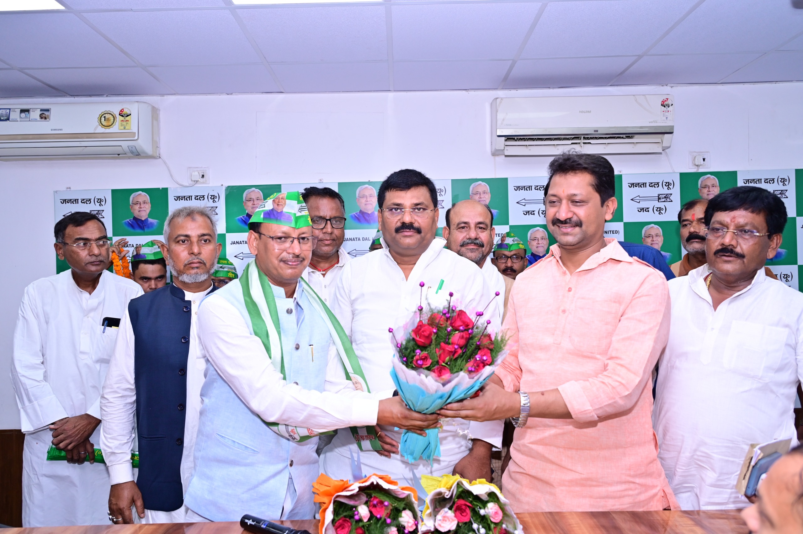 पटना : आज यानि रविवार (2 7 अप्रैल) को पटना स्थित जनता दल (यू0) के प्रदेश कार्यालय में आयोजित मिलन समारोह में बहुजन समाज पार्टी के प्रदेश उपाध्यक्ष सकलदेव दास के नेतृत्व में कई वरिष्ठ पदाधिकारियों एवं बड़ी संख्या में कार्यकर्ताओं ने जदयू का दामन थामा। इस अवसर पर जद (यू0) के प्रदेश अध्यक्ष उमेश सिंह कुशवाहा ने सभी नए साथियों को पार्टी की प्राथमिक सदस्यता ग्रहण करवाई। कार्यक्रम के दौरान बिहार सरकार के मंत्री श्री सुमित कुमार सिंह, पार्टी के प्रदेश महासचिव सह मुख्यालय प्रभारी श्री चंदन कुमार सिंह, जमुई जिला अध्यक्ष श्री शैलेन्द्र महतो तथा मीडिया पैनलिस्ट श्री महेश दास सहित कई वरिष्ठ नेतागण उपस्थित रहे।