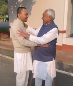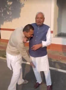गांधी मैदान में सीएम पद की शपथ लेने के बाद नीतीश कुमार एक अण्णे मार्ग पहुंचे, जहां बेटे निशांत से मुलाकात हुई। यहां से दोनों की इमोशनल तस्वीर सामने आई है। निशांत पिता नीतीश कुमार का पैर छूते हैं, जबकि नीतीश कुमार उन्हें गले लगा रहे हैं।