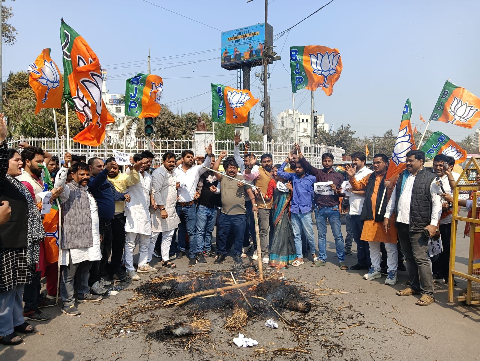 भाजपा के बड़ी संख्या में जुटे कार्यकर्ता प्रदेश कार्यालय से निकले और पैदल मार्च करते हुए इनकम टैक्स गोलंबर पहुंचे। इस दौरान सभी कार्यकर्ता कांग्रेस और राहुल गांधी के विरोध में लिखे नारे वाली तख्तियां लिए हुए थे और उनके खिलाफ जमकर नारेबाजी कर रहे थे। प्रदर्शनकारियों ने हाथों में झंडे और तख्तियां लेकर कांग्रेस नेता के खिलाफ अपना गुस्सा जाहिर किया।