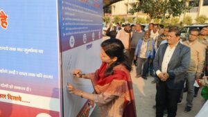 बिहार, वैशाली। बाल विवाह मुक्त भारत अभियान के लिए 100 दिन के कार्यक्रम के तहत आज दिनांक 22 जनवरी 2026 को जिला पदाधिकारी श्रीमती वर्षा सिंह ने जागरूकता रथ को हरी झंडी दिखाकर रवाना किया। इस दौरान जिला पदाधिकारी महोदया ने रथ के बैनर पर स्वयं हस्ताक्षर भी किया।
