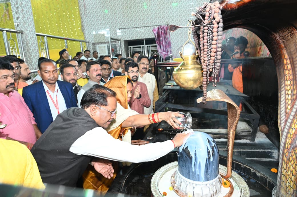 रायगढ़ । महाशिवरात्रि के पावन अवसर पर मुख्यमंत्री विष्णु देव साय अपनी धर्मपत्नी श्रीमती कौशल्या साय के साथ रायगढ़ प्रवास के दौरान रात एक बजे ग्राम कोसमनारा स्थित श्री श्री 108 श्री सत्यनारायण बाबा धाम पहुंचे। उन्होंने भगवान भोलेनाथ एवं श्री श्री 108 श्री सत्यनारायण बाबा की विधिवत पूजा-अर्चना कर प्रदेशवासियों की सुख-समृद्धि और खुशहाल जीवन की कामना की। इस अवसर पर मुख्यमंत्री ने पूरे प्रदेश वासियों को महाशिवरात्रि पर्व की बधाई एवं शुभकामनाएं दी।