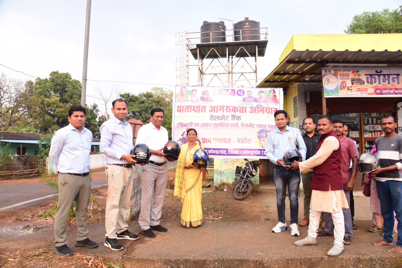 “हेलमेट बैंक” योजना का मुख्य उद्देश्य दोपहिया वाहन चालकों में हेलमेट पहनने की आदत विकसित करना और सड़क दुर्घटनाओं में होने वाली मृत्यु दर एवं गंभीर चोटों को कम करना है। इस योजना के अंतर्गत नेशनल हाईवे 30 के आसपास स्थित उन ग्राम पंचायतों में हेलमेट बैंक स्थापित किए गए हैं, जहां दुर्घटनाओं की संख्या अपेक्षाकृत अधिक है। वर्तमान में जिले के 9 ग्राम पंचायत—मस्सुकोकोड़ा, माझीआंठगांव, लंजोडा, अनंतपुर, बड़ेराजपुर, बनियागांव, मसोरा, मर्दापाल और माकड़ी में यह व्यवस्था संचालित की जा रही है।