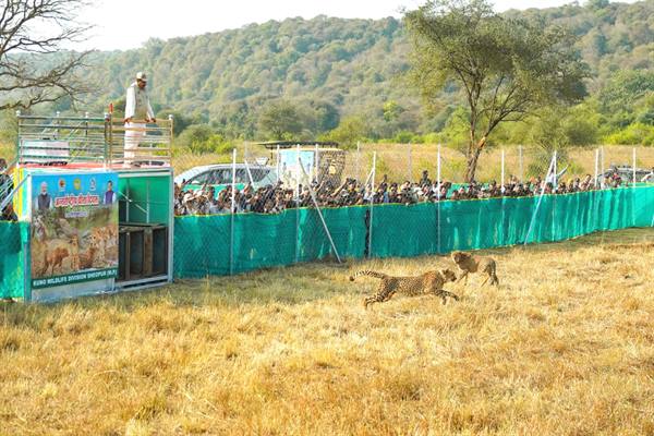 मुख्यमंत्री डॉ. यादव ने गुरूवार को श्योपुर जिले के कूनो राष्ट्रीय उद्यान में अंतर्राष्ट्रीय चीता दिवस पर तीन चीतों को स्वछंद विचरण के लिये बाड़े से अभयारण्य में छोड़ा। मुख्यमंत्री डॉ. यादव ने कहा कि मध्यप्रदेश की भूमि पर सभी जीव सुरक्षित होंगे, राज्य सरकार इसके लिये प्रतिबद्ध है। उन्होंने कहा कि उन्नत रेडियो ट्रेकिंग प्रणाली और समर्पित टीमों के माध्यम से सतत् निगरानी की जाएगी। मुख्यमंत्री डॉ. यादव ने चीता दिवस के अवसर पर कूनो राष्ट्रीय उद्यान के वर्ष-2026 के कैलेण्डर और ‘फील्ड मैन्युअल फॉर क्लिनिकल मैनेजमेंट ऑफ फ्री-रेंजिंग चीताज़ इन कूनो नेशनल पार्क’ बुक का विमोचन किया। साथ ही कूनो राष्ट्रीय उद्यान में ‘नव-निर्मित सोवेनियर शॉप’ का लोकार्पण भी किया। मुख्यमंत्री डॉ. यादव ने कूनो राष्ट्रीय उद्यान के पारोंद में आयोजित कार्यक्रम में चीता दिवस पर सभी प्रदेशवासियों को बधाई दी।