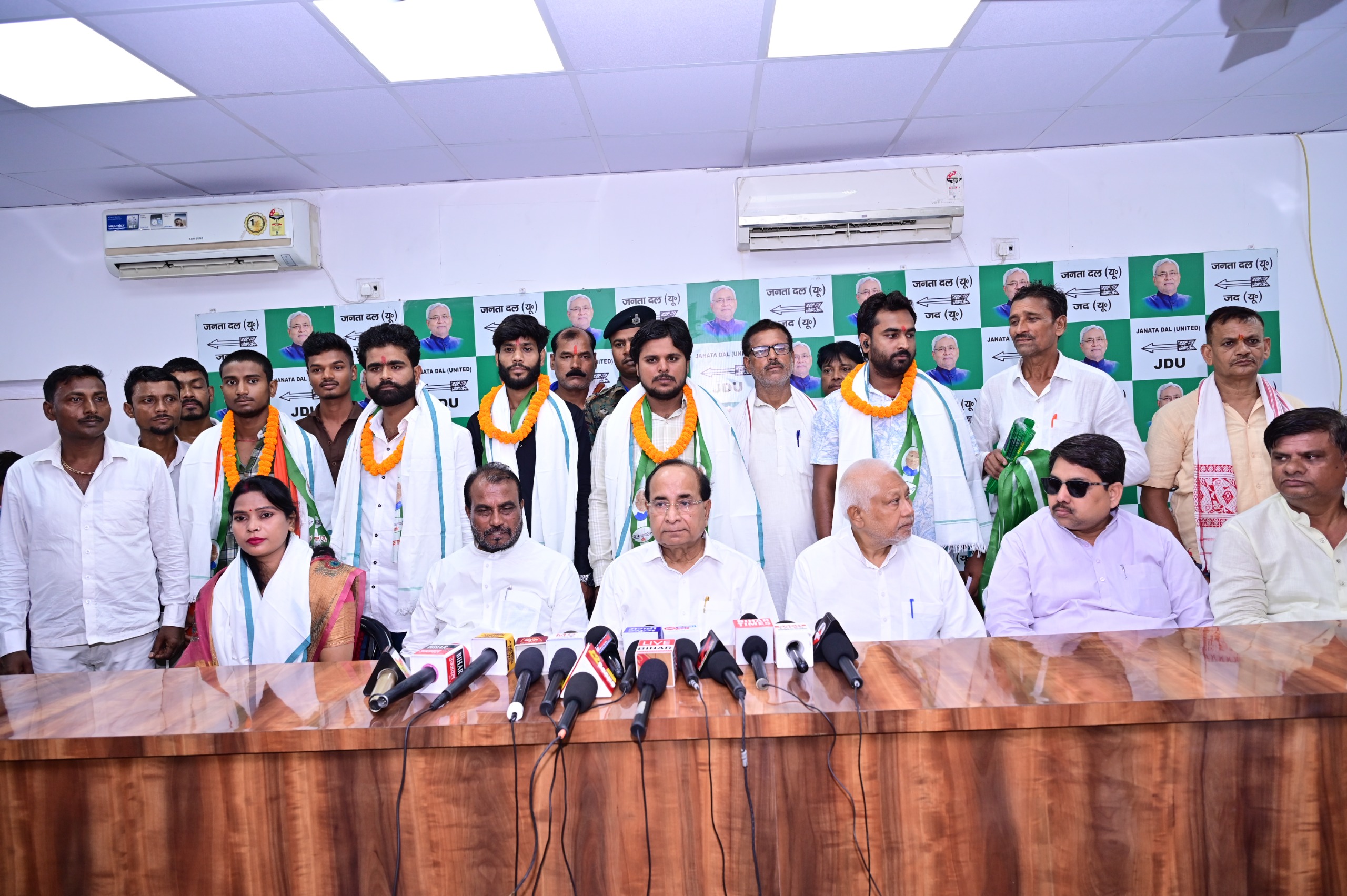 बिहार, पटना : जनता दल (यू0) के प्रदेश कार्यालय, पटना में रविवार को आयोजित मिलन समारोह के दौरान श्री गौरव गिरी एवं श्रीमती गुड़िया कुमारी के नेतृत्व में फुलवारी शरीफ से कई साथियों ने जदयू की सदस्यता ग्रहण की। इस अवसर पर विधान परिषद में सत्तारूढ़ दल के उपनेता सह पार्टी कोषाध्यक्ष श्री ललन कुमार सर्राफ, विधान परिषद में सत्तारूढ़ दल के मुख्य सचेतक श्री संजय कुमार सिंह उर्फ गांधी जी तथा राष्ट्रीय महासचिव सह पूर्व मंत्री श्री श्याम रजक ने सभी नवागंतुकों को पार्टी की प्राथमिक सदस्यता दिलाई।