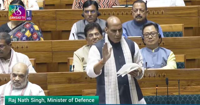 नई दिल्ली : लोकसभा में आज सोमवार को ‘ऑपरेशन सिंदूर’ पर चर्चा के दौरान रक्षा मंत्री राजनाथ सिंह ने विपक्ष पर तीखा हमला बोला। उन्होंने नेता प्रतिपक्ष राहुल गांधी पर निशाना साधते हुए कहा कि उन्होंने हमेशा यह सवाल किया कि हमारे कितने विमान पाकिस्तान ने मार गिराए, लेकिन कभी यह नहीं पूछा कि भारत ने दुश्मन के कितने विमान गिराए। राजनाथ सिंह ने कहा कि विपक्ष को सवाल जरूर पूछना चाहिए, लेकिन सवाल राष्ट्रहित में होने चाहिए।