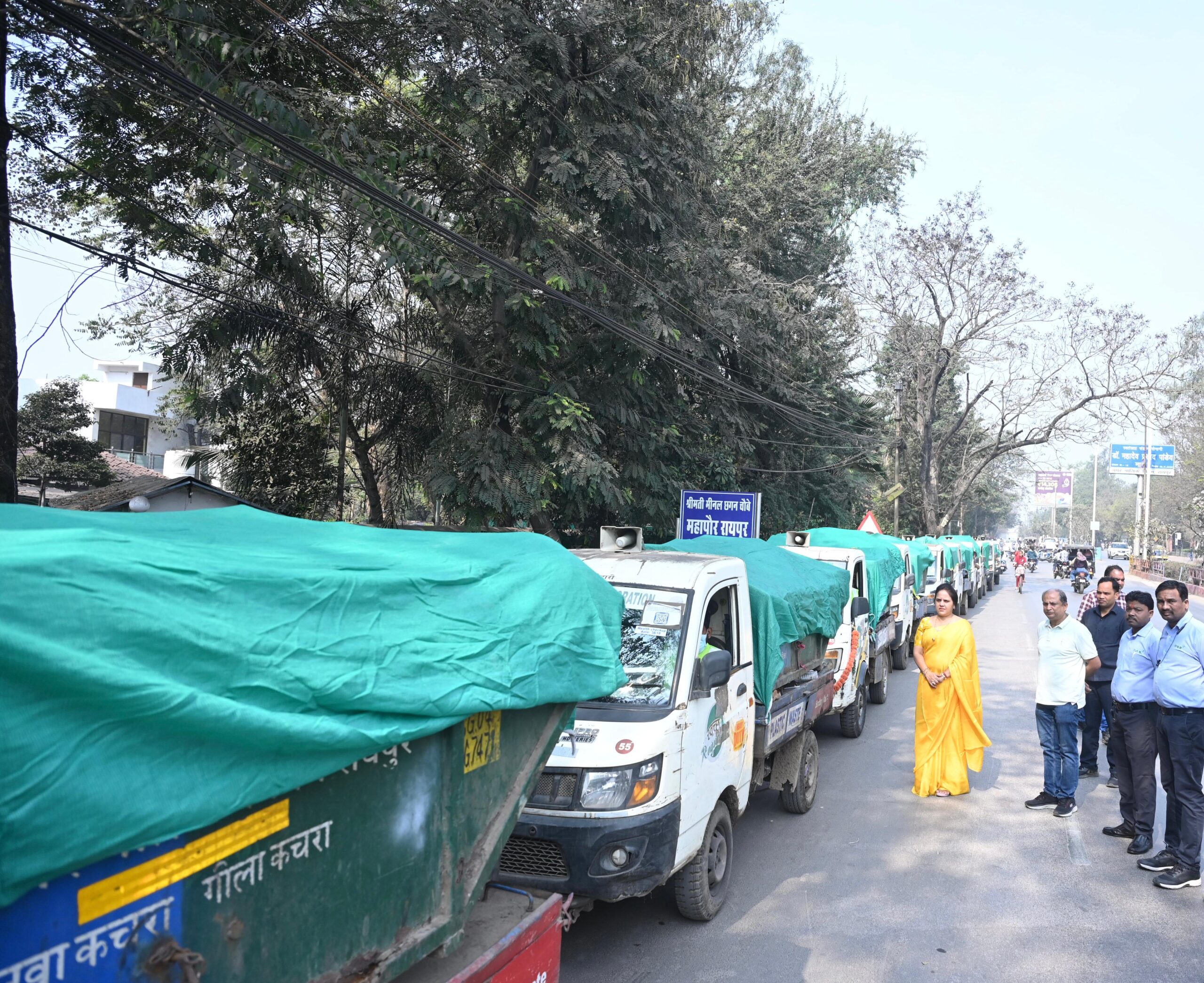 रायपुर : राजधानी शहर रायपुर में स्वच्छता व्यवस्था को और अधिक सुदृढ़ बनाने के उद्देश्य से महापौर मीनल चौबे ने स्वच्छता की जिम्मेदारी निभा रहे ड्राइवरों एवं सफाई मित्रों से संवाद किया। इस अवसर पर महापौर ने निर्देश दिए कि कचरा परिवहन के दौरान कचरे के फैलाव को रोकने एवं पर्यावरण को स्वच्छ बनाए रखने के लिए सभी कचरा परिवहन वाहनों में एक ही प्रकार एवं मानक की ग्रीन नेट अनिवार्य रूप से लगाई जाए।