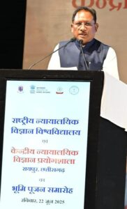 मुख्यमंत्री विष्णुदेव साय ने कहा कि यह दिन छत्तीसगढ़ के लिए ऐतिहासिक है क्योंकि आज एक साथ तीन महत्वपूर्ण संस्थानों की नींव रखी गई है जो प्रदेश को राष्ट्रीय और अंतरराष्ट्रीय स्तर पर नई पहचान दिलाएंगे। मुख्यमंत्री ने कहा कि एनएफएसयू विश्व का पहला और एकमात्र विश्वविद्यालय है जो फॉरेंसिक साइंस, साइबर सुरक्षा, व्यवहार विज्ञान जैसे विषयों के अध्ययन के लिए पूर्णतः समर्पित है। इसका रायपुर परिसर नवा रायपुर को एक उभरते हुए राष्ट्रीय शैक्षणिक केंद्र के रूप में स्थापित करेगा। यह संस्थान न केवल छत्तीसगढ़, बल्कि पूरे मध्य भारत के लिए कानून व्यवस्था, न्यायिक प्रक्रिया और फॉरेंसिक अनुसंधान का सशक्त आधार बनेगा।