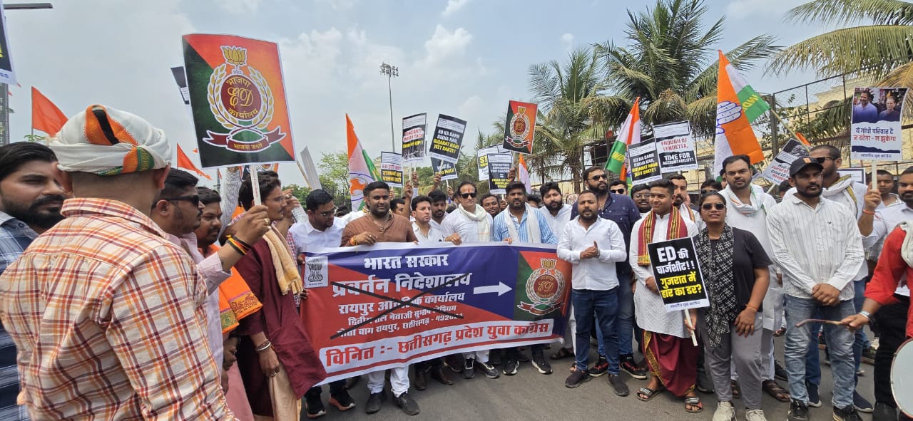 रायपुर। नेशनल हेराल्ड मामले में कांग्रेस नेता सोनिया गांधी और हमारे नेता राहुल गांधी के नाम को ई डी की FIR मैं शामिल किए जाने और कांग्रेस पार्टी की छवि को धूमिल किए जाने के विरोध में आज भारतीय जनता पार्टी की एजेंट के रूप में कार्य करने वाले प्रवर्तन निदेशालय ईडी कार्यालय का नामकरण संस्कार छत्तीसगढ़ प्रदेश युवा कांग्रेस द्वारा किया गया,